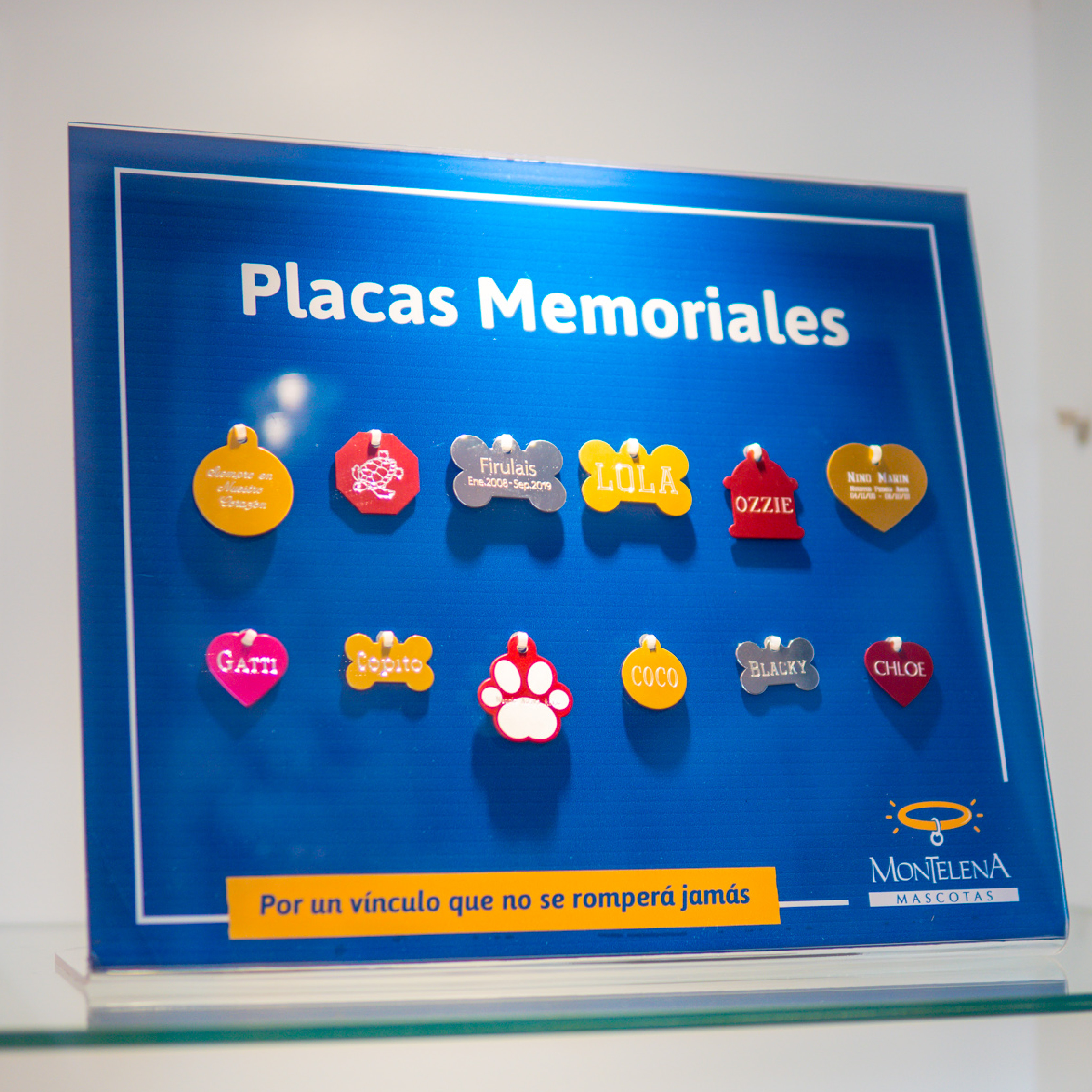 PlacasDiferentes estilos y colores de placas que puede personalizar con el nombre de su mascota, un mensaje breve o con la fecha de nacimiento y defunción. Incluye instalación de la placa en la urna de su mascota.